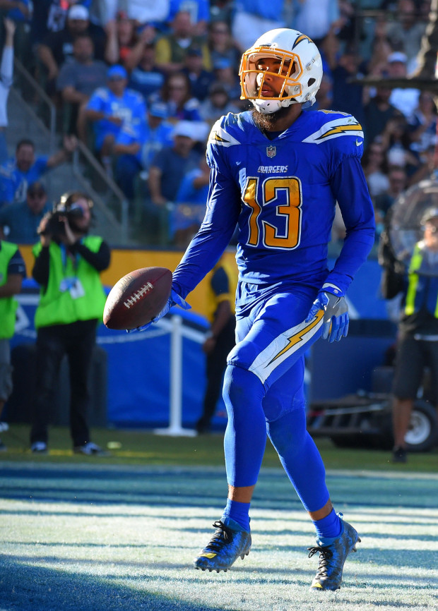 Chargers Keenan Allen comes up with a touchdown reception in the 3rd quarter at StubHub Center in Carson on Sunday, December 3, 2017. (Photo by Scott Varley, Daily Breeze/SCNG)